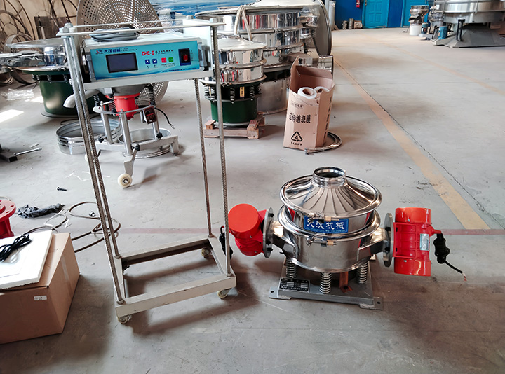 有很多客户定制我们的超声波直排筛,我厂生产的超声波直排筛可以筛分细粉,还能解决粉体受潮和结块的难题。上图是江苏的一个顾客定制的小型超声波直排筛,他们那边的气候容易使粉体受潮,受潮后的粉料极易产生结块、抱团现象,若直接进入包装线,不仅会导致计量不准,还会严重影响产品的观感与使用体验,他用来抖散受潮结块的调味粉。传统的直排筛加上超声波系统,超声波换能器将电能转化为高频机械波,使筛网产生微米级的超高频振动。高频振动使调味粉始终保持悬浮低飞状态,极大地降低了调味粉与网面的接触阻力,防止受潮粉末粘附在筛网上,有效处理调味粉的结块、堵网问题。
